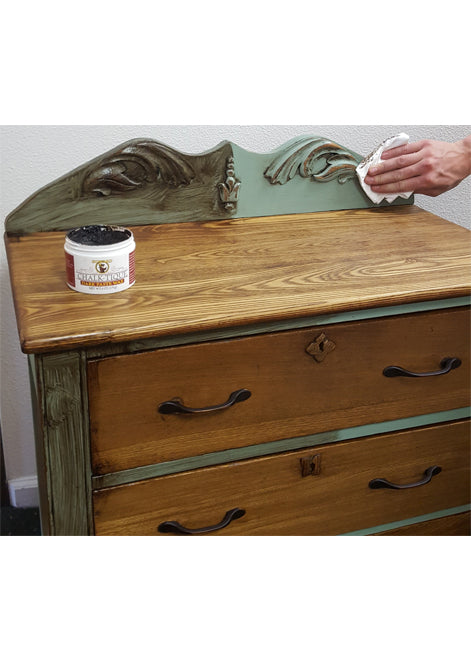 Chalk-Tique Paste Wax is the perfect follow up to any chalk-painted surface. Chalk-Tique Paste Wax adds a natural-looking satin wax finish that helps protect and beautify your new chalk-style painted surface. Use Chalk-Tique Dark Paste Wax to slightly darken the paint and help create a “distressed” looking, aged patina. Use Chalk-Tique Light Paste Wax to help seal, finish, and protect the newly painted surface without darkening the paint. This process creates a very appealing patina that only a chalk-style paint and paste wax combination will achieve.