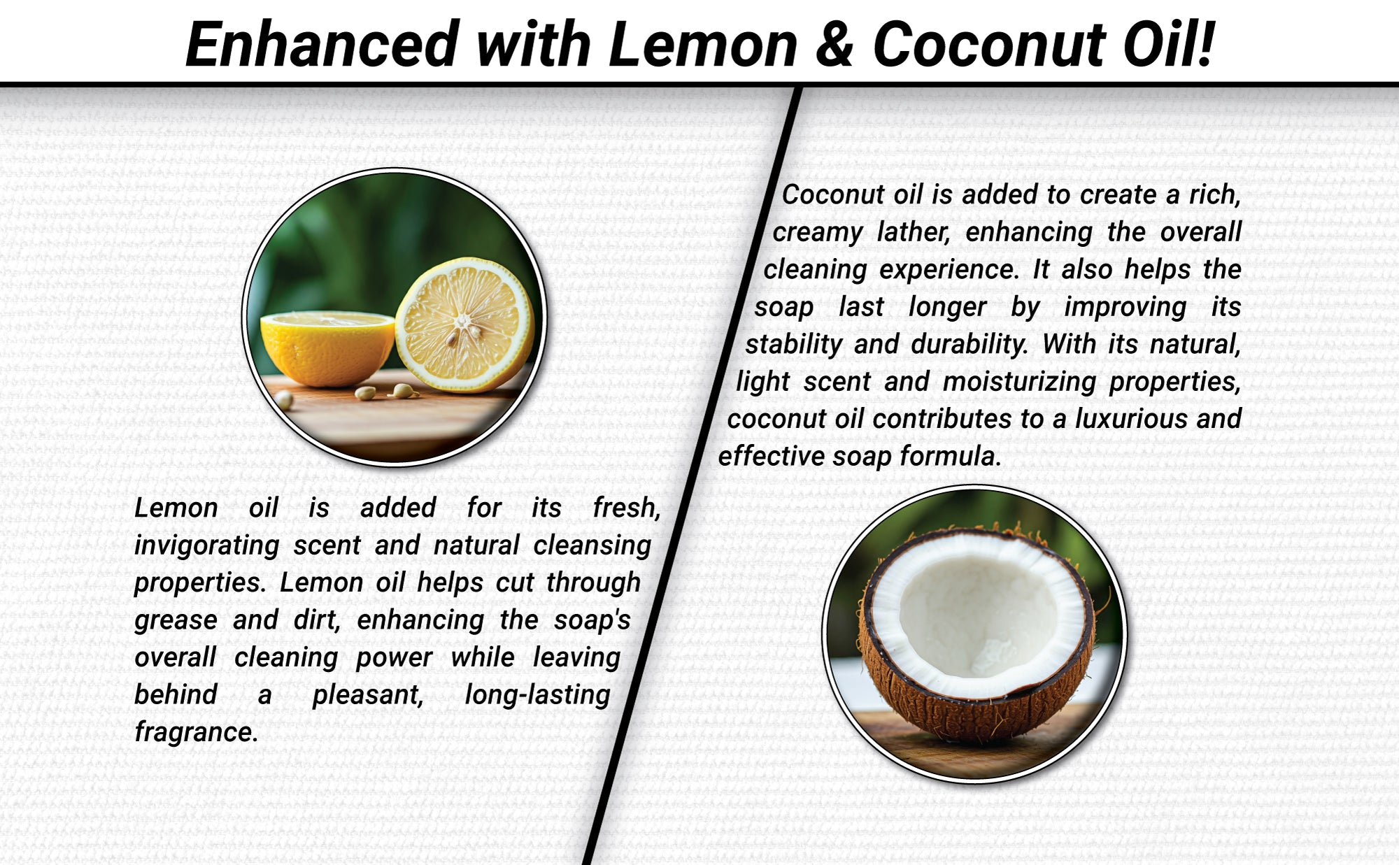 - Freshens and cleans wood surfaces with real coconut soap and lemon oil