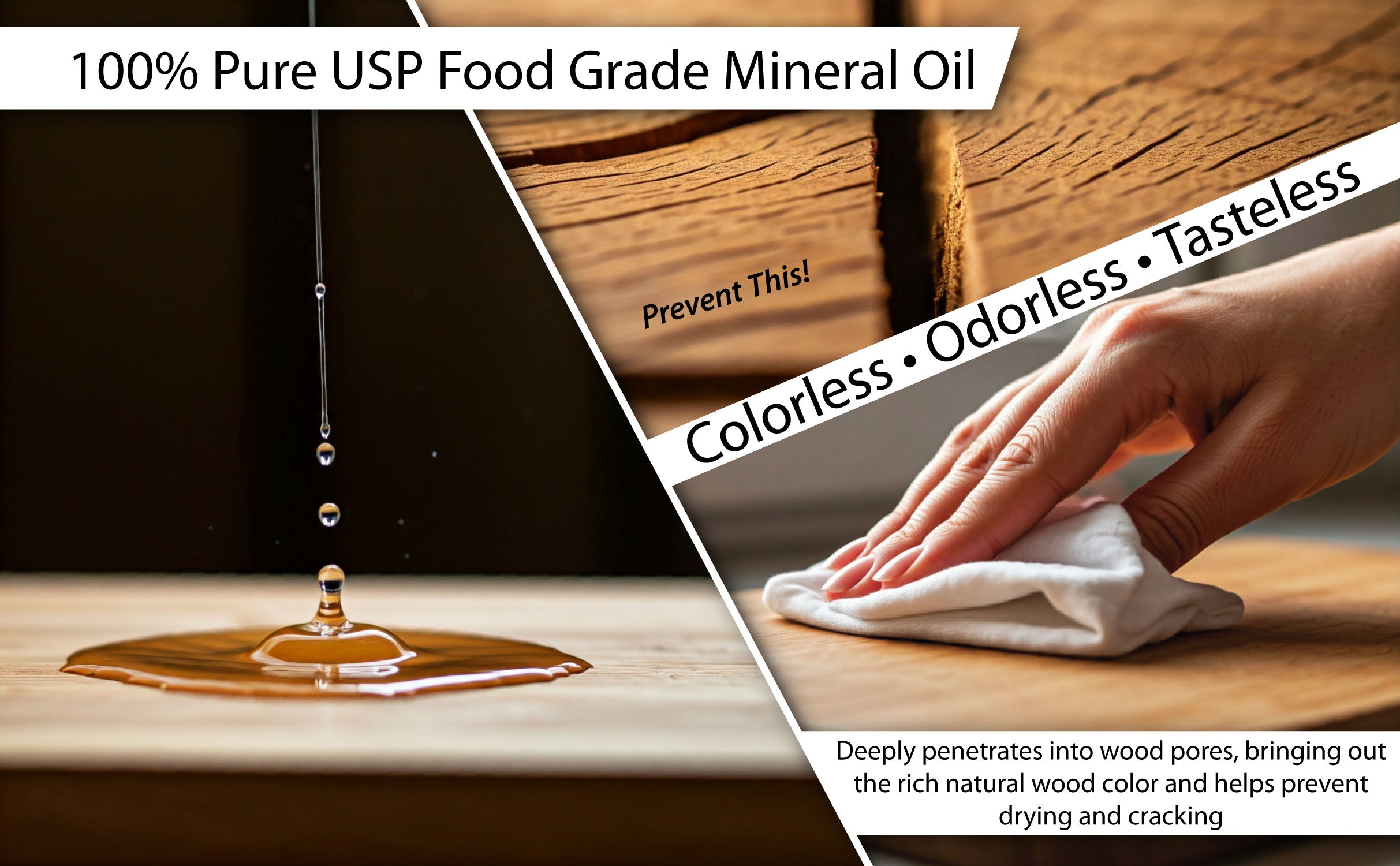 - Cutting Board Oil is a deep penetrating 100% Pure USP Food Grade Mineral Oil that is tasteless, odorless, colorless, and will never go rancid