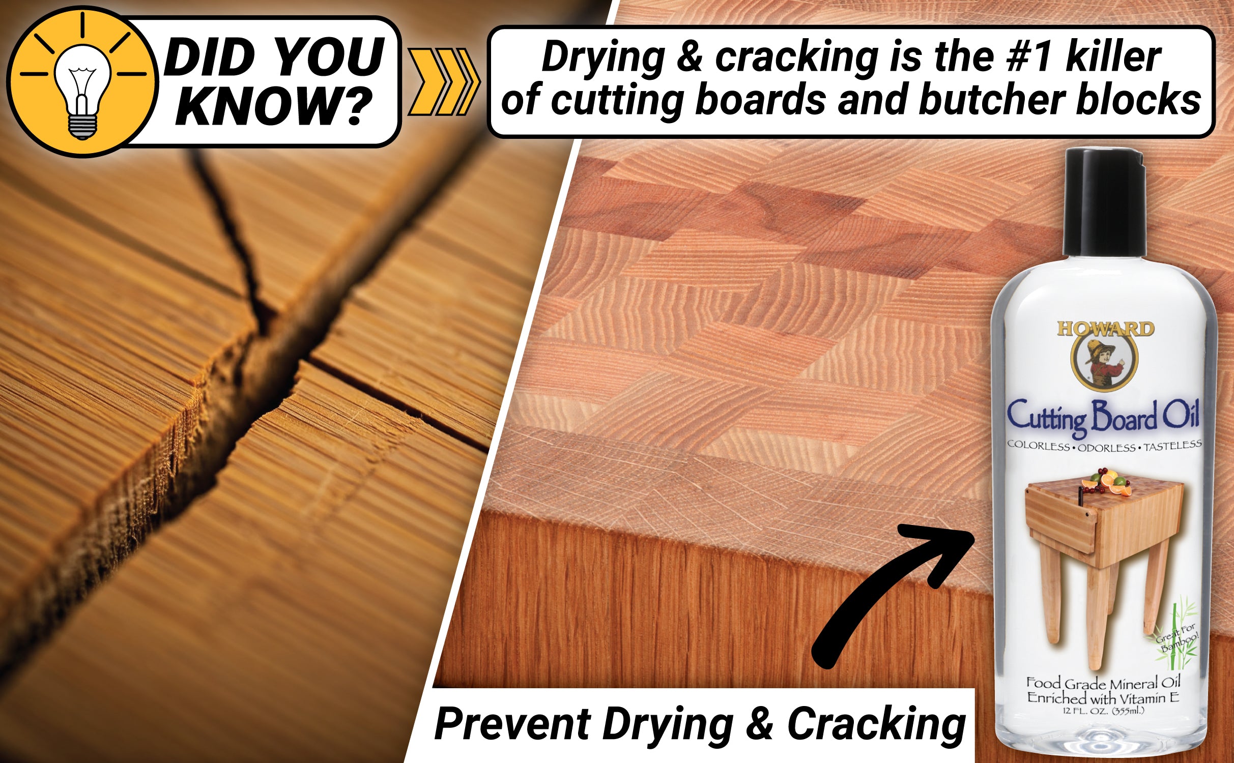 Howard Cutting Board Oil is made with clear, odorless, pure food-grade mineral oil. The penetrating quality of food-grade mineral oil brings out the depth of grain in wood and helps prevent drying and cracking. Cutting Board Oil is perfect for the initial “oiling” or “seasoning” of cutting boards and butcher blocks.