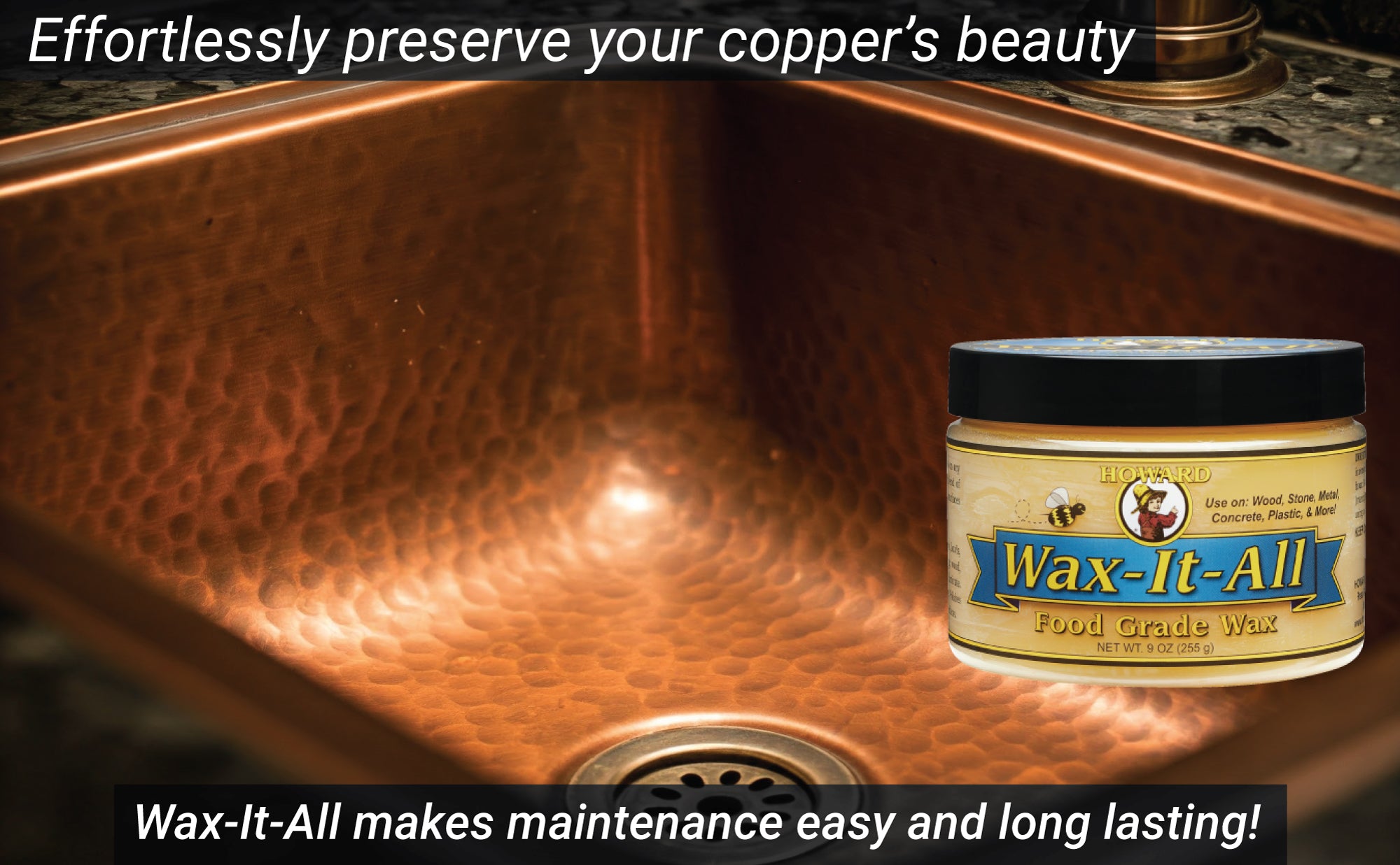 Use Wax-It-All to care for a multitude of surfaces in and around your home. Wax-It-All can be used to shine and protect wood countertop surfaces, concrete, stainless steel, granite, marble, soapstone, slate, and laminate. This innovative product revives faded wood, metal, and plastic furniture, polishes wood and painted cabinets, and helps to prevent tarnishing on metal surfaces.